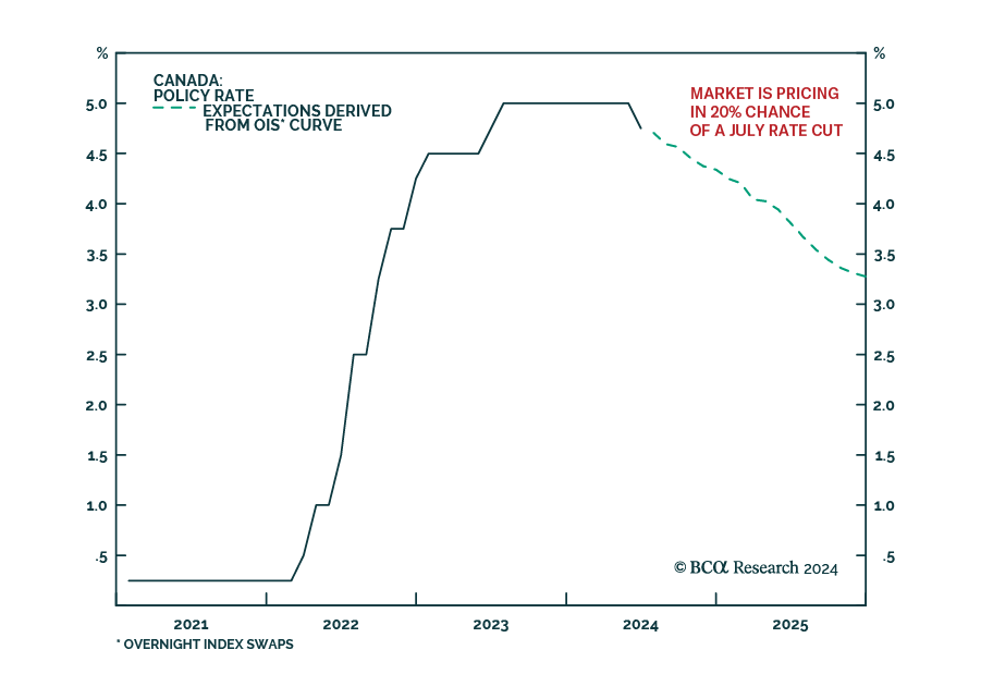 The market is currently expecting another cut in Canada in July or September. It will be dependent on data between now and those meetings.