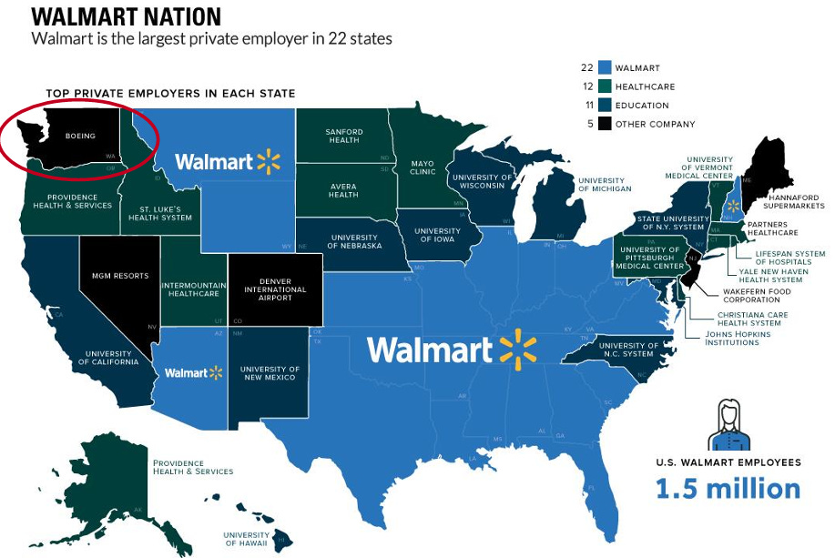 Walmart is the largest private employer in almost half of all states.