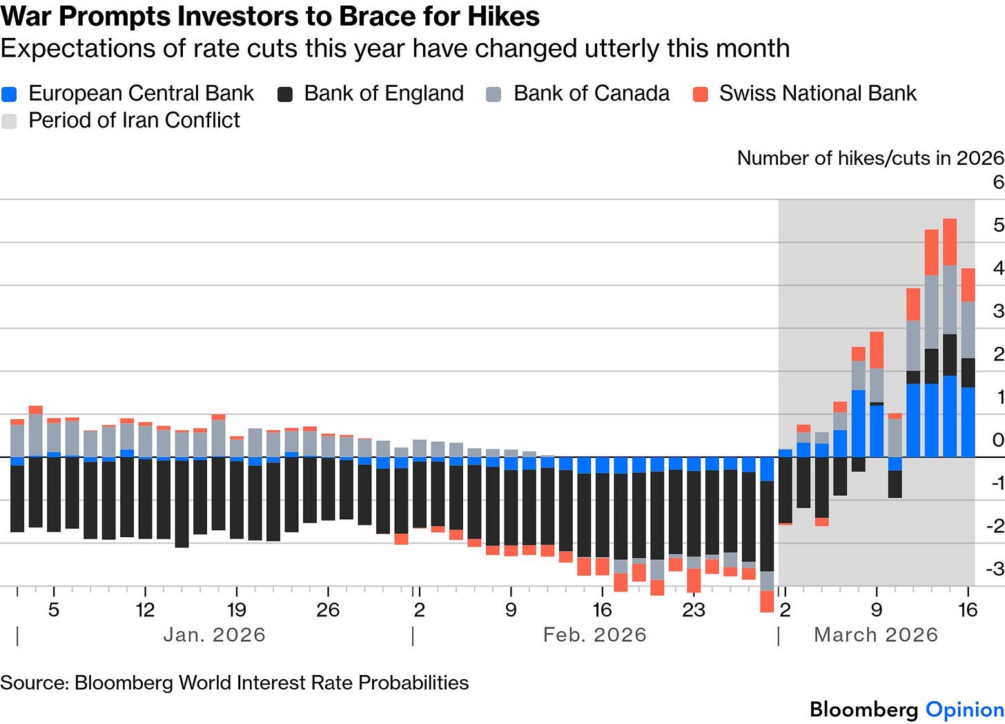 Central banks are in a tough spot. Markets are starting to price hikes again. Using rates to fight a supply-driven commodity shock is a blunt tool at best. (Bloomberg)