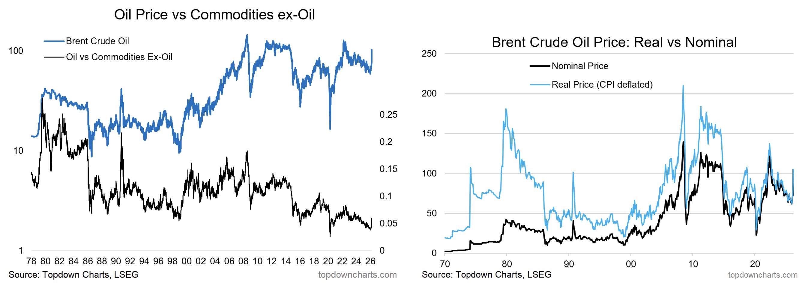 And while triple digit crude prices seem high, this isn’t anywhere near bad on a historical basis. (Callum Thomas)