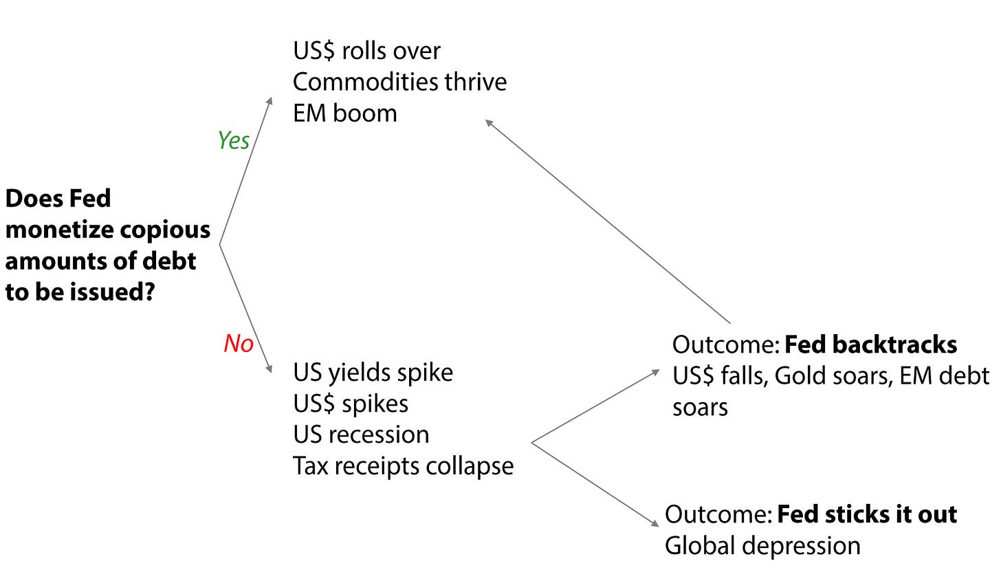 Gavekal questions who is going to buy this debt and the path forward. This is how they think about it and how you should be positioned based on your outlook.