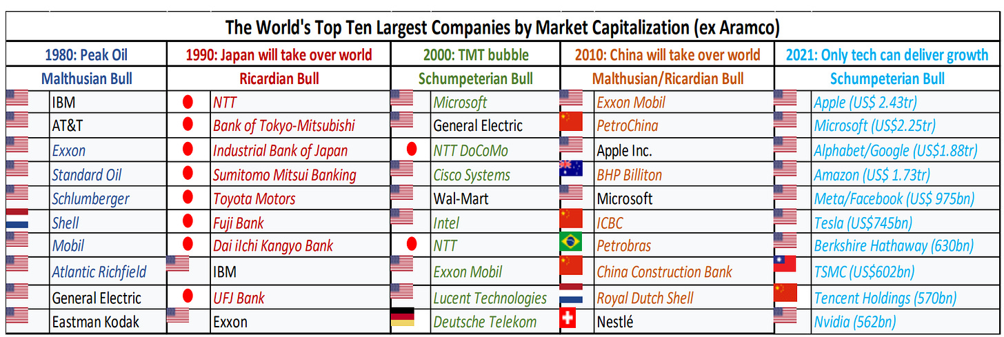 What are the chances the top companies in the world are the same 10 years from now? These are wonderful businesses but eventually you run into the law of large numbers, how big can these companies get? From the chart below, more likely than not, the biggest companies in the world will be different in 2030.