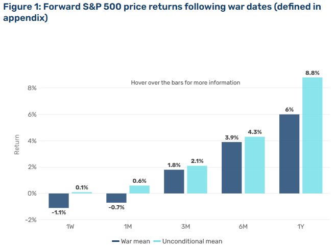 Man Group looked at S&P 500 performance following wars. Markets tend to move higher more often than not. (Man Paper)