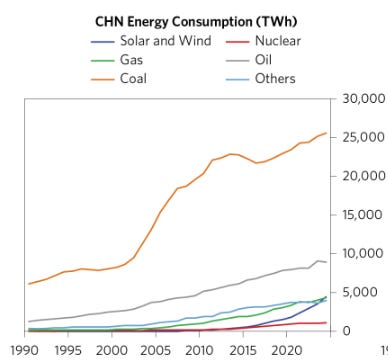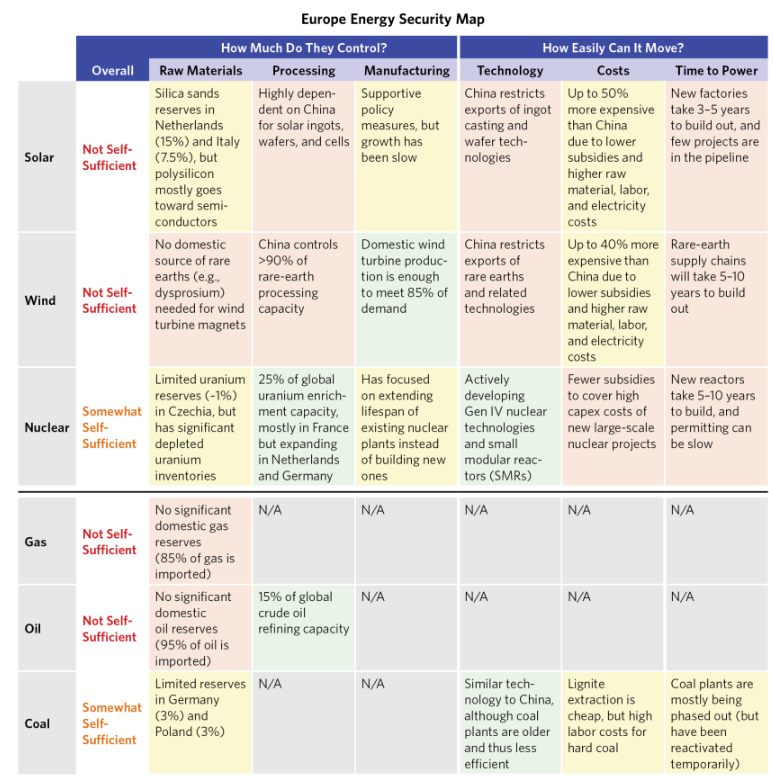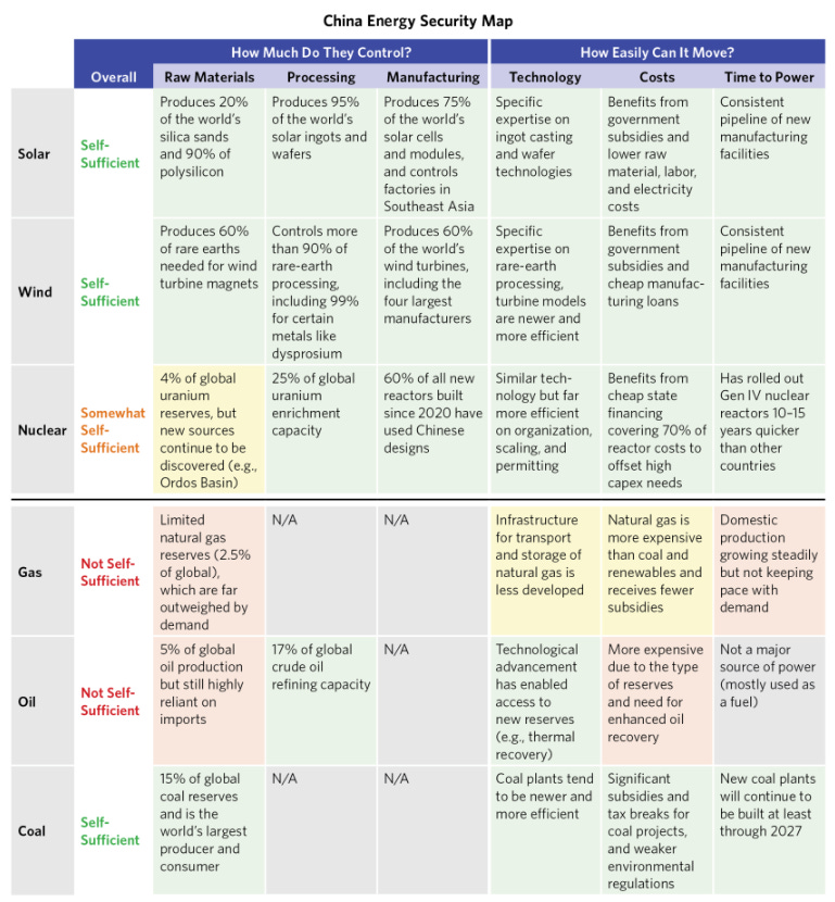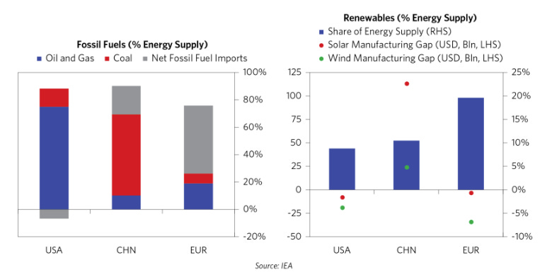 China is the opposite, they have built capabilities to lead renewable supply chains but are dependant on fossil fuel imports excluding coal.