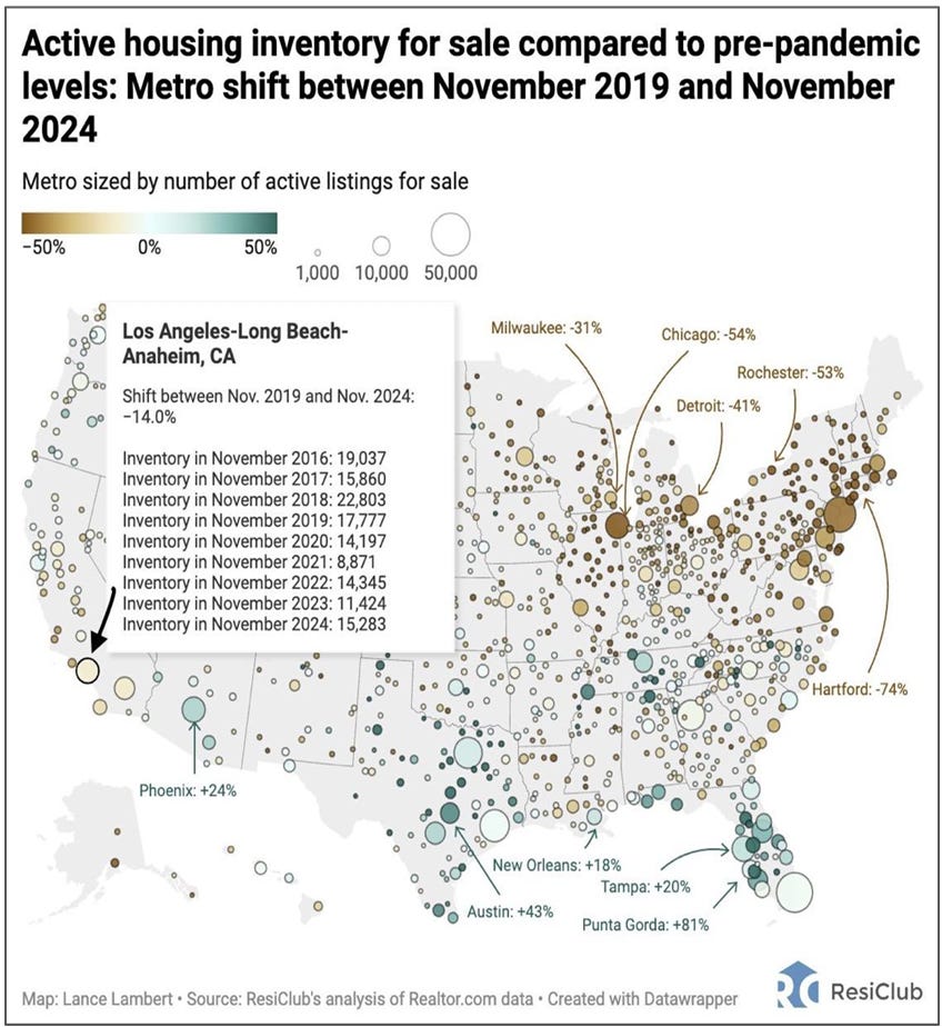 Active listings are increasing in the South, while declining in the Northeast. The South saw the highest price increases and is the primary source of new supply.